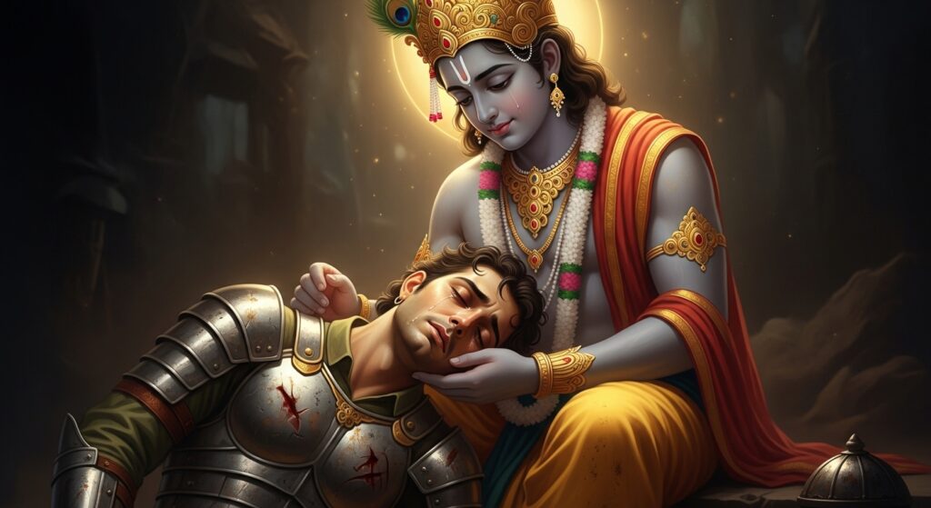 “प्रभु… मैं जानता हूँ आप कौन हैं… मैंने जीवनभर अधर्म का साथ दिया, फिर भी क्या आप मुझे क्षमा करेंगे?”