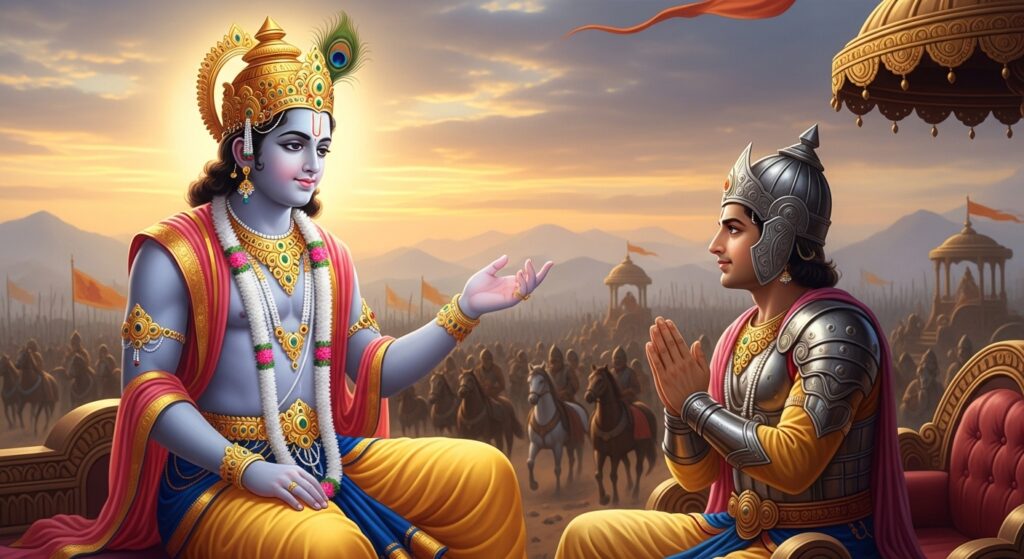 “पार्थ, इस युद्ध में कोई शत्रु या मित्र नहीं है—सब केवल अपने कर्मों के बंधन में बंधे हुए आत्मा हैं।